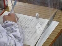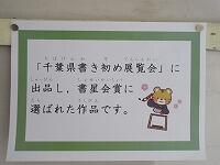 校長室前の廊下の掲示場所に、「千葉県書き初め展覧会」に出品して、「書星会賞」に選ばれた作品を掲示しています。