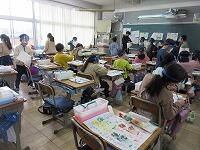 2組は、国語で1年生に渡す「絵本作り」に取り組んでいました。どんな「絵本」ができるか楽しみです。