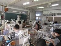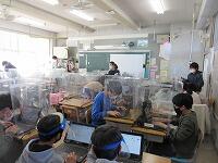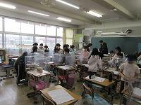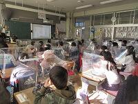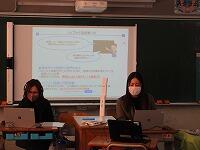 2組は、家庭科の「暖かく快適に過ごす着方」で、寒い季節を快適にする衣服の働きについて考えていました。