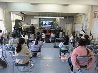 研修会が終わった後に、機器とコードのつなぎ方や切り替えの仕方の確認をしています。