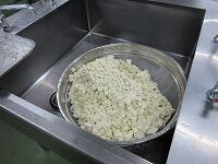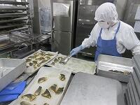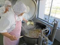 「ほっけ」をクラスごとに分けています。機械で焼いています。「肉じゃが」の味付けをしています。