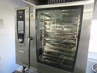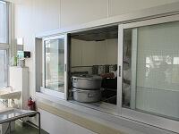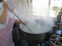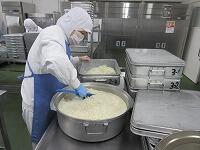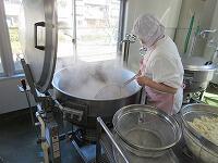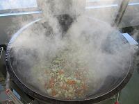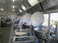 「肉じゃが」のいい匂いがしています。重さを量りながら、「ご飯」を分けています。この機械で「ご飯」を炊いています。