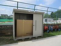 「災害時用トイレ備品倉庫」から「災害トイレのキット」を取り出します。