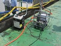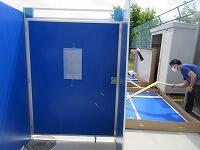 プールの水をポンプで汲み上げて流します。「防災トイレ」の完成です。