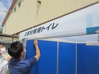 学校では、第2校舎西トイレの改修工事が行われています。