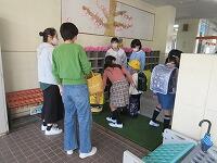 昇降口や傘立て、下駄箱の場所や数を確認します。