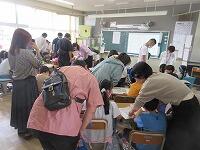 西部消防署の方の話を聞き、解説を受けながら見本を見せていただきます。