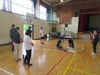 引き渡し訓練は、校庭の状態が悪いため、室内での実施としました。