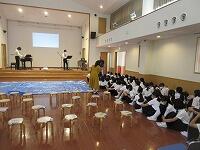 プロに伴奏してもらいながら、多くのお客さんの前で校歌を披露しました。