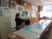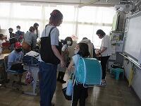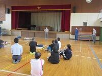 引き渡し訓練は、校庭の状態が悪いため、室内での実施としました。