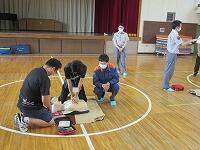 その後、意識確認からAEDを使用するまでの流れを、実際にやっていきます。