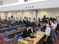 西部消防署の方の話を聞き、解説を受けながら見本を見せていただきます。