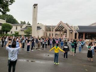 体育館に集まることもできますが、時間を有効に使うため、今回はオンラインでの実施です。