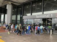 成田空港の展望デッキで、飛行機が発着するのを見ました。