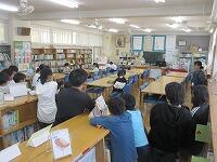 学校行事の企画や運営を行う児童会役員と、校内のあいさつ運動を行っている生活委員会の児童が、代表として話を聞きました。
