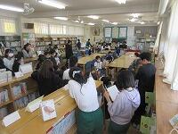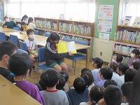 昼休みの学校図書館で、子ども司書による読み聞かせを行いました。