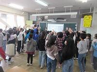 オンラインによる実施で、各教室で、全員が画面越しにじゃんけんをします。