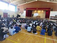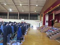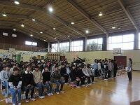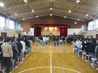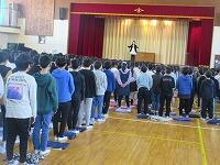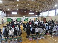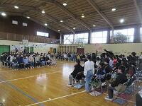 各学級で通知票を受け取り、体育館で修了式を行いました。