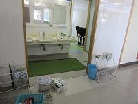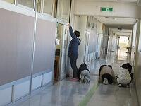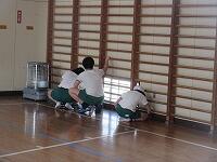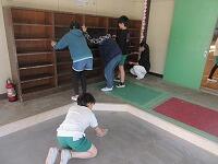 11日には、体育館の床を水拭きし、ワックスをかけました。