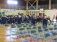 当日は参加できない5年生が見守る中、いつも以上に緊張している卒業生が入場します。