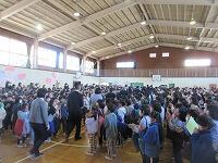 全校児童に見送られる先生方、今までありがとうございました。