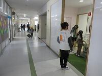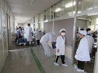 廊下での並び方、階段の降り方、校庭への移動の仕方など、事前に確認したように避難します。