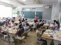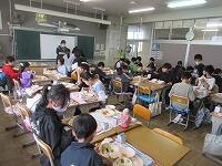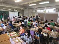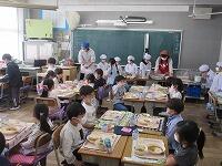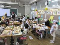 久しぶりの給食ですが、子どもたちは慣れた様子で準備に取り掛かります。