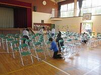 式場となる体育館を清掃し、手際よく会場設営を進めてきます。