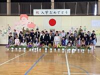 保護者の方が見守る中、笑顔で入場し、しっかりと話を聞いています。