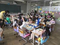 6年生に教えてもらい、一緒にやることで、1年生も段取りを覚えていきます。