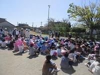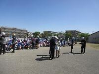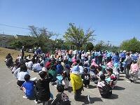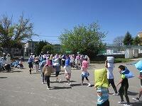 その後、避難経路を確認するために、校庭へ二次避難を行いました。