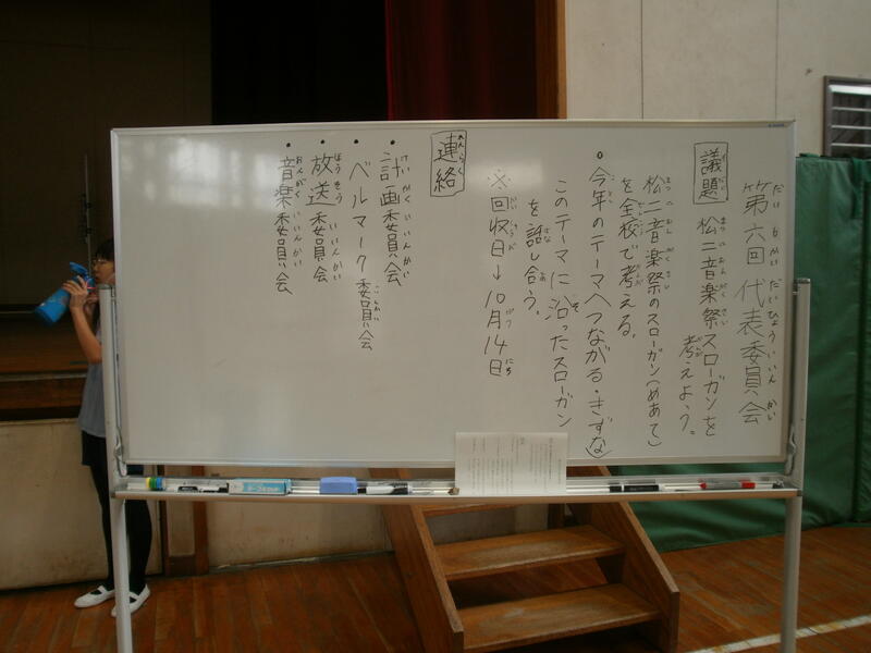 「松二音楽祭のスローガンを考えよう」です。テーマは「つながる・きづな」。心に響くスローガンを募集中!