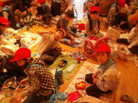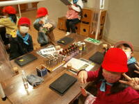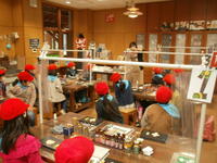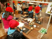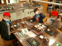 はんこ屋さん、レザーキーホルダー、タイルアート、鉛筆立てに分かれて活動開始。