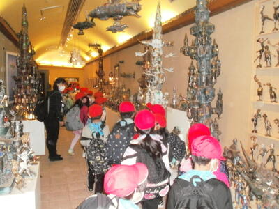 おやつも食べてしあわせそう。その後は美術館内を見学。