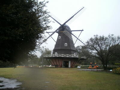 雨の風車の風情があります。