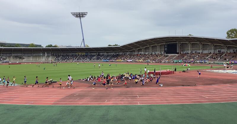 今日は柏市小学校陸上競技大会が柏の葉陸上競技場で行われました。曇り空でしたが涼しく、陸上大会としては良いコンディションでした。