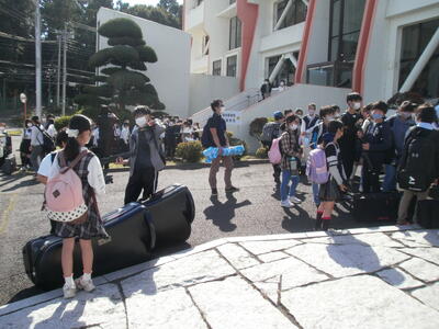 楽器運搬もみんなで協力して。