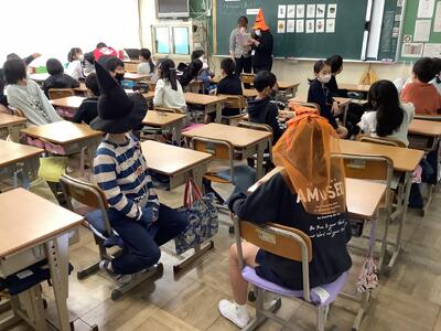 朝の会の時間に6年生の学級の前を歩きました。