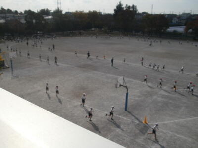 校庭を見ると砂埃が舞い上がっていました。何をやっているかよーく見るとドッチボールのようです。どうやら4年生の学年ドッチボールのようです。