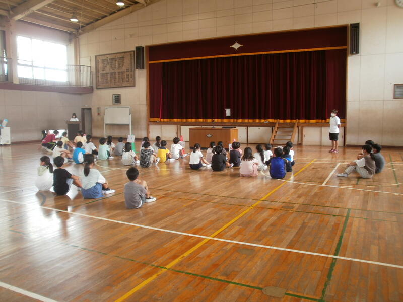 校長先生からは夏休み中の出来事や防災の日についての話がありました。そして最後に今日から松葉二小に着任する2人の方の紹介がありました。1人はスクールサポートスタッフ、もう1人は教育支援員の方です。