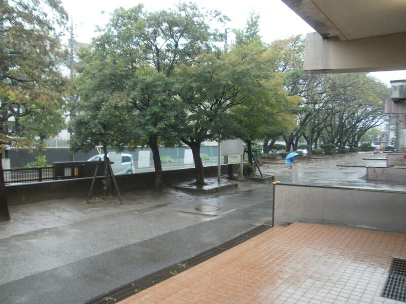 地震の想定なので防災頭巾をかぶって校庭に避難。