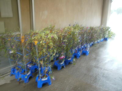 昨日の委員会活動に時間、ふと校庭を見ると1年生のアサガオが見えました。このままでは台風でみんな倒れてしまうということでちょうど近くにいた栽培委員会の人たちにアサガオの避難を頼みました。快く手伝ってくれて無事アサガオを避難させることができました。本当に頼りになる5,6年生です。