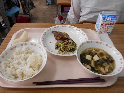 メニューは鯖の味噌煮とたくあんのり和えとうずらたまごと焼麩のすまし汁、ご飯、牛乳、なしでした。