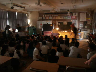 1,3,5年生の子どもたちが続々と集まってきました。あっという間に図書室は満員に。