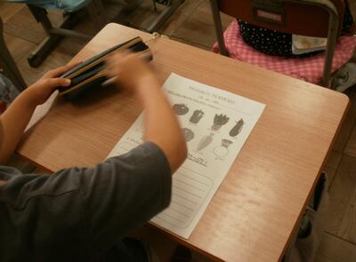 「生き物ブック(図鑑)」を作るための組み立て表を作る授業です。
