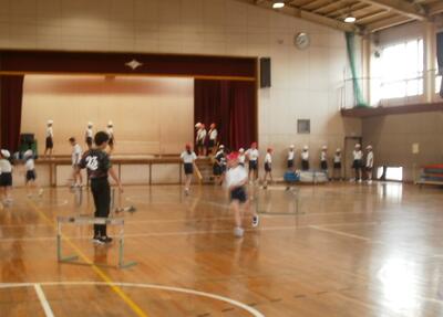 体育館では今年が最後の陸上大会に向けて種目ごとの練習をしていました。