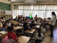 図書室を見ると4年生が学校図書館指導員の先生から授業を受けていました。