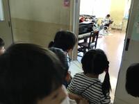 説明を受けていざ出発 迷子にならないように手をつないで 授業の邪魔にならない配慮も〇