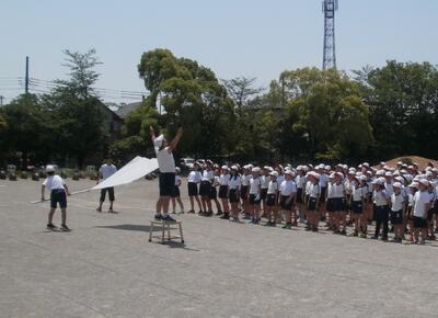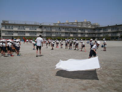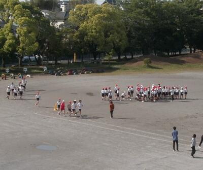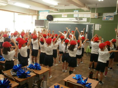 今日は朝、各学級で応援練習をしました。応援団の人が赤白それぞれに別れてコールや振り付けを教えてくれました。お互いに声の大きさで張り合っていました。