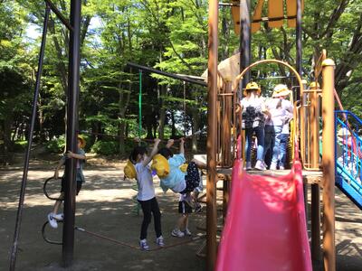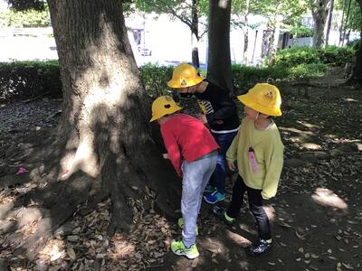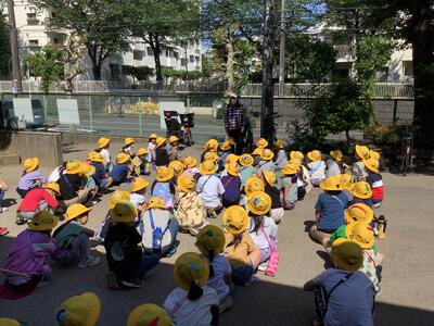今日は入学してはじめての校外での活動(公園探検)でした。